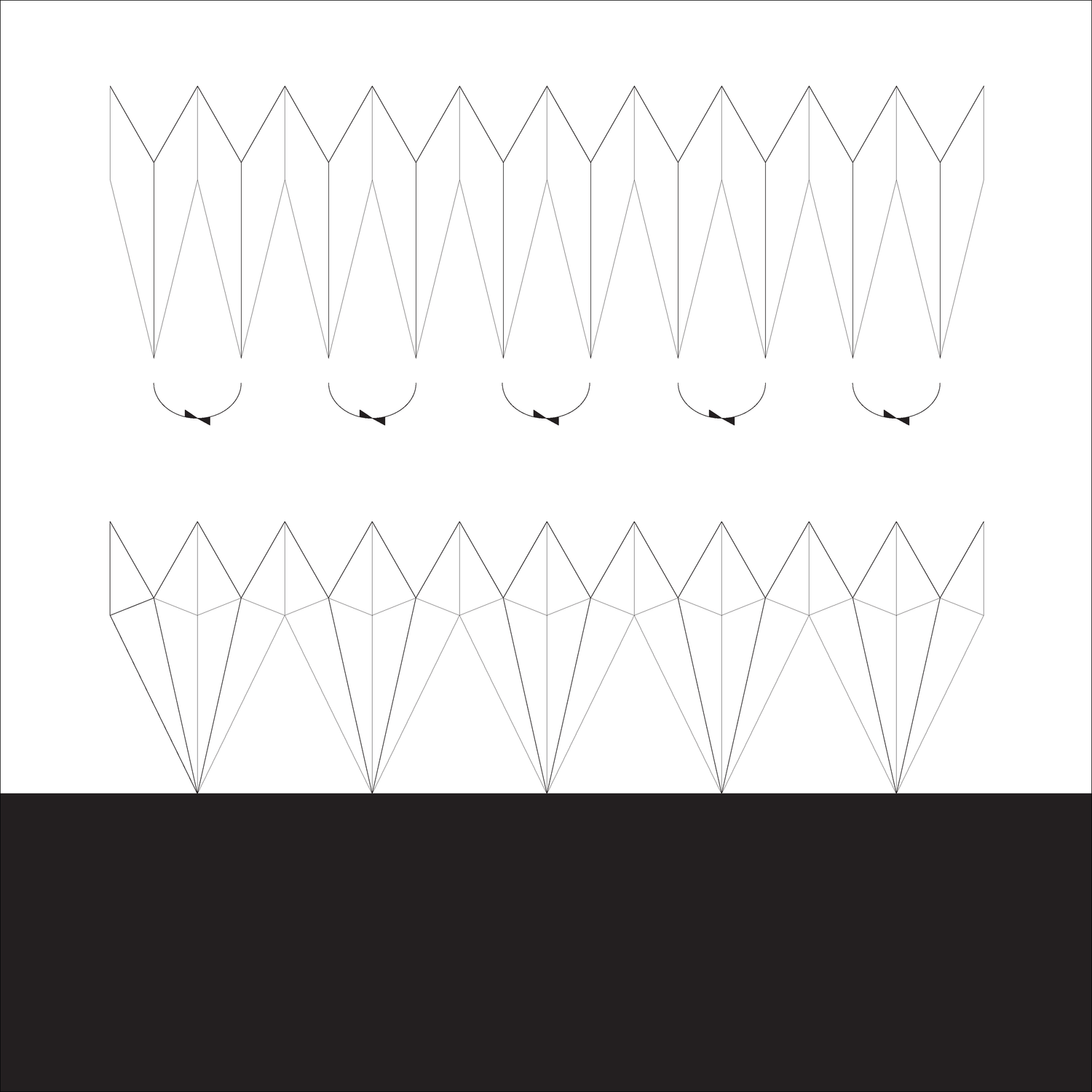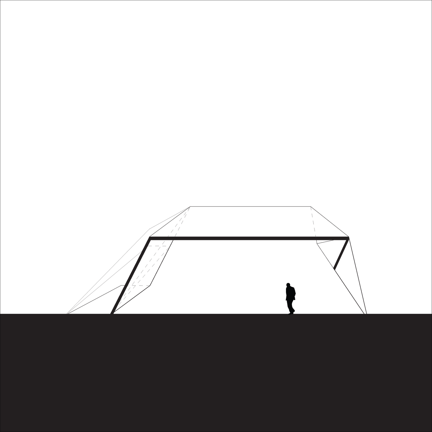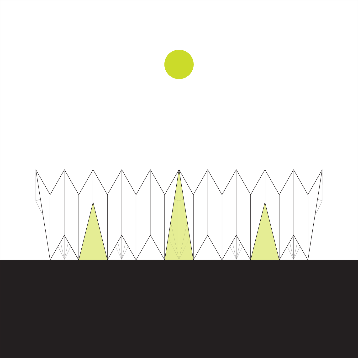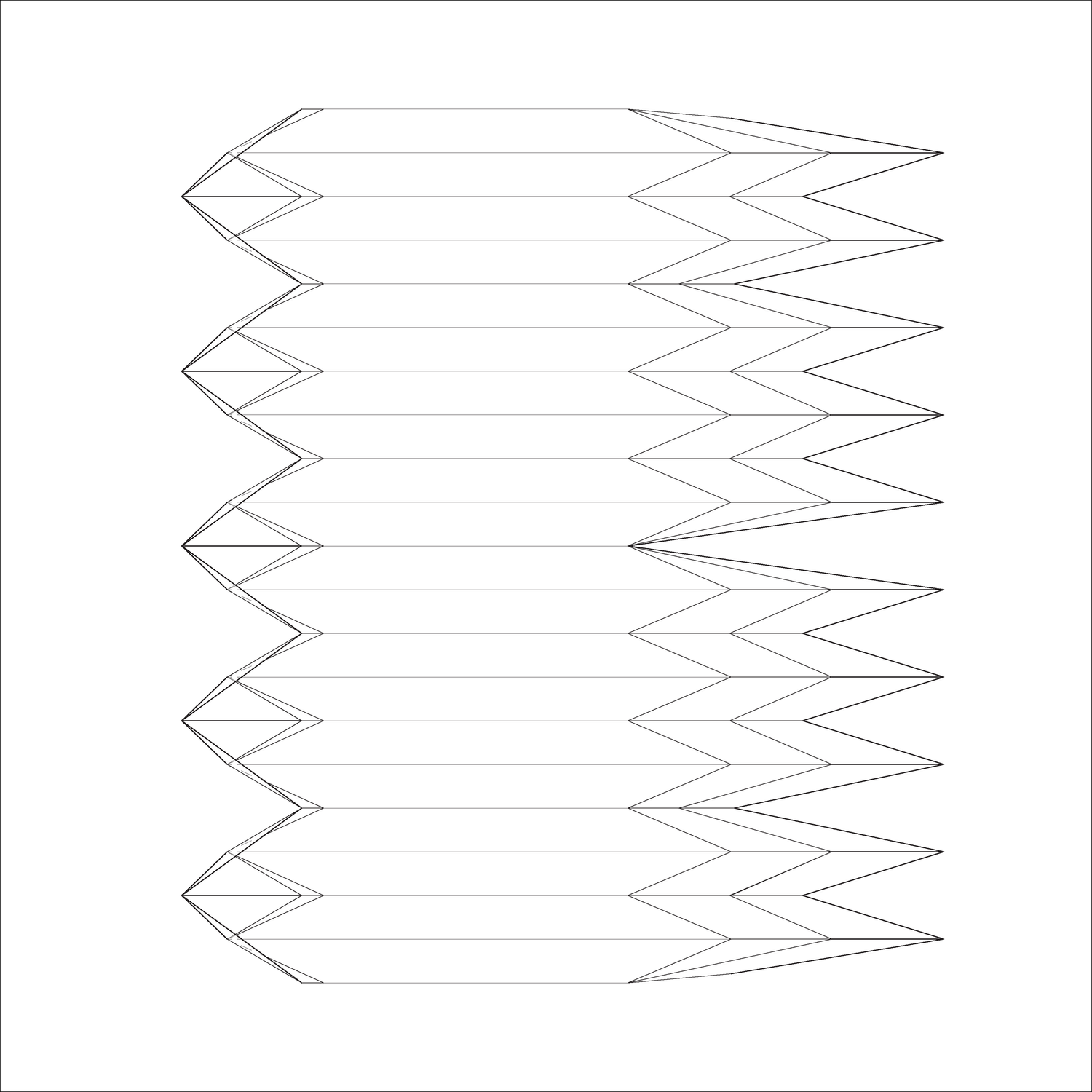 Exterior view of the folded pavillion, showing variation in the slitted exterior.